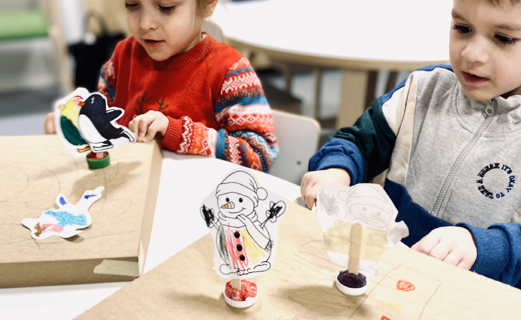 Me teeme ägedaid meisterdusi, mis PÄRISELT TÖÖTAVAD-raketid, mis lendavad ja autod, mis sõidavad. Iga tund on midagi uut-vahel teeme midagi paberist, teinekord värvime või voolime midagi savist, valmistame ise lima ja mänge, millega hiljem kodus mängida.